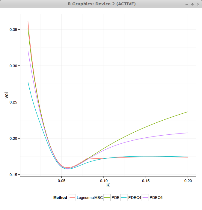 We can see that the higher the cap is, the closer we are to the standard SABR PDE, and the lower the cap is, the flatter are the wings.