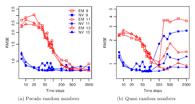 But there are very few studies about how good are real world simulations with so many quasi-random dimensions. A recent paper "Fast Ninomiya-Victoir Calibration of the Double-Mean-Reverting Model" by Bayer, Gatheral & Karlsmark tests this for once, and the results are not so pretty: